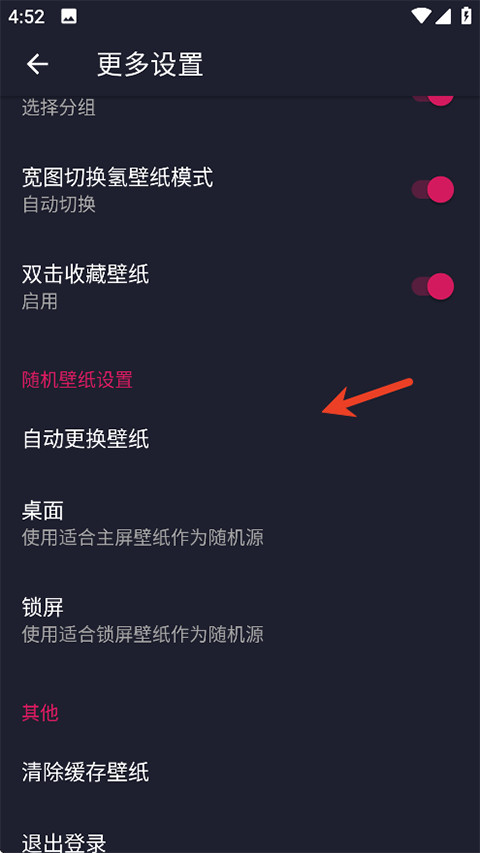 下滑找到“更多设置”,选择“随机壁纸”选项。