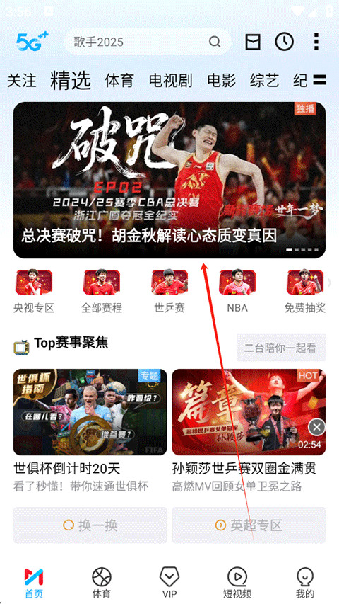 打开咪咕视频应用,进入首页后点击需要播放的视频内容进入观看界面。