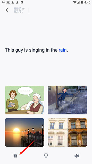 1、进入软件学习单词时,如果记住了可以点击左下方的斩,这表示可以学习下一个单词。