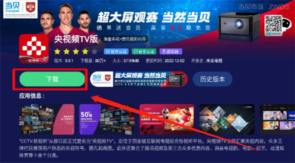4、安装完成后,进入当贝市场即可收看央视电视直播。