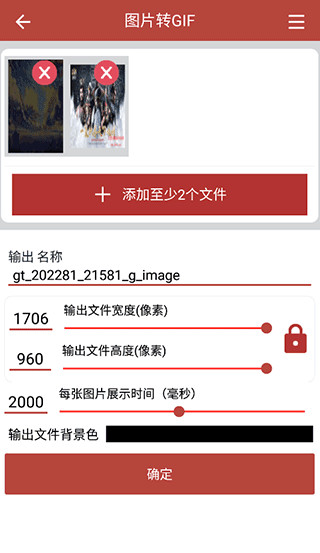 2、选择至少两张图片,点击确认生成初步GIF素材。
