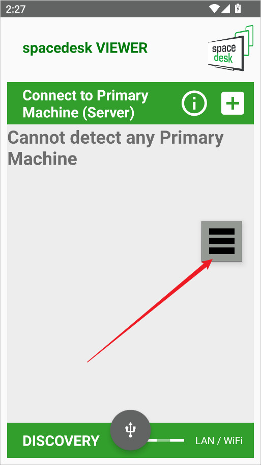 1、打开Spacedesk后,点击界面右侧的菜单按钮。