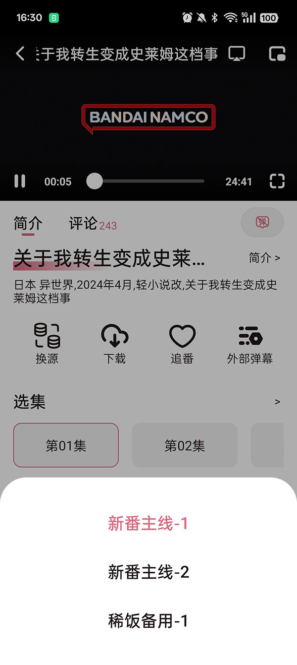 稀饭动漫播放器怎么切换播放源