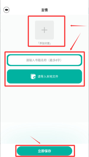 4、先点击添加封面输入名称导入本地文件点击下面的立即保存即可。