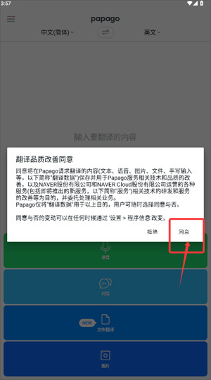 2、首次启动时请阅读翻译优化说明,确认后点击“同意”开启服务。