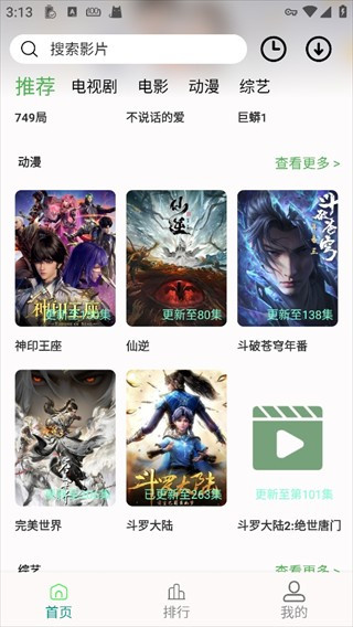2、进入之后,在首页能够看到连续剧、电影、综艺、动漫。要是没有您想找的内容,可在顶部搜索框进行搜索。