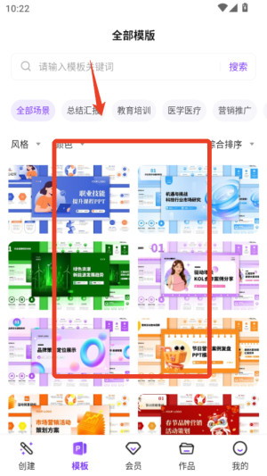 2、在风格库中选择合适的模板主题,如商务或教育风格,系统会根据选择匹配设计元素。