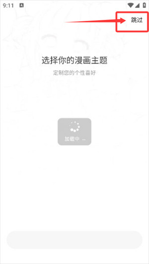 1、启动应用后,在选择主题页面可直接点击跳过进入主界面。