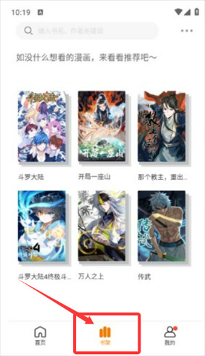 3、点击底部书架标签,即可查看个人已收藏的所有漫画作品。