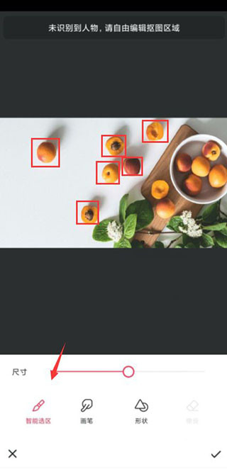 7、通过画笔和橡皮等工具,抠选处需要的部分,随后点击屏幕右下角的“钩”标识。
