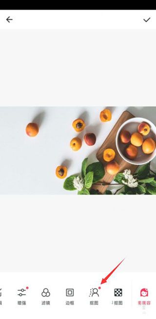 3、将下方的“美图”功能向左滑动,直到看到“抠图”功能。