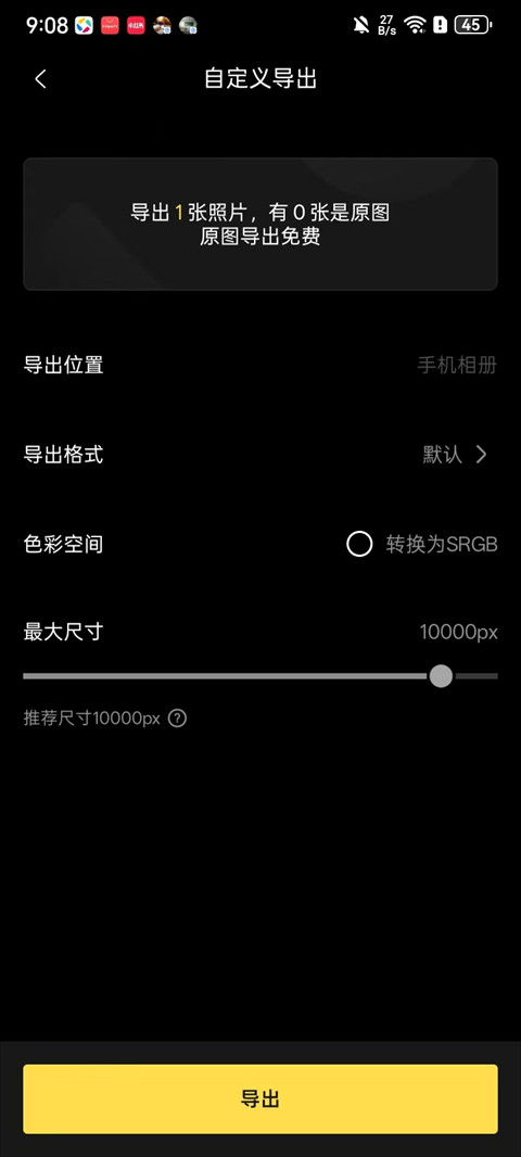 7、【自定义导出】:可修改导出位置、格式、色彩空间以及最大尺寸;