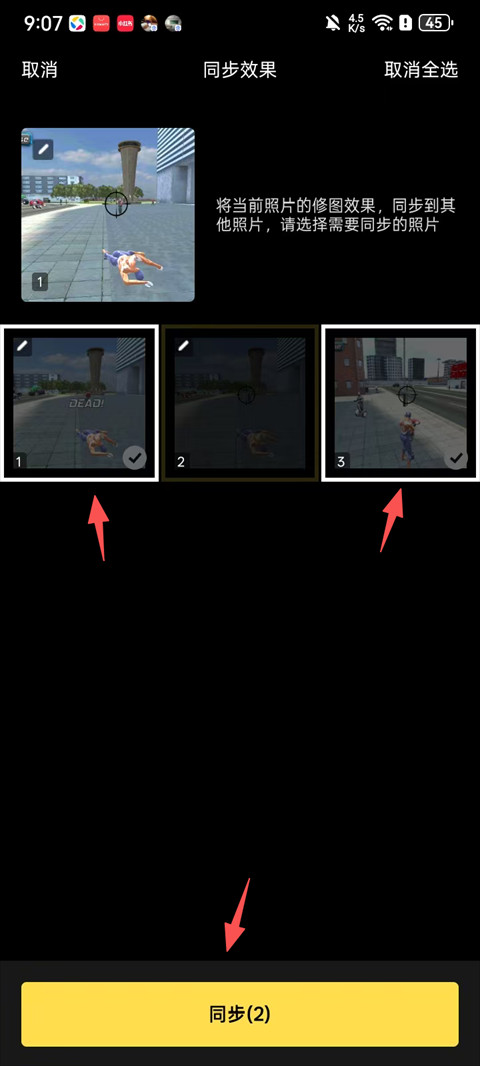 3、以【预设】为例,点击为图片添加合适的预设效果,并【保存预设】,最后点击左下角的【同步】按钮;