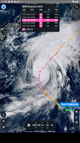 5、例如这个app的风暴追踪功能就可以点击风这个数据后来实时追踪风暴
