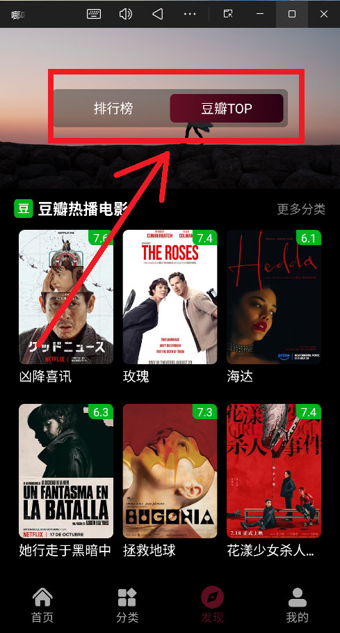 4、这里提供了如“排行榜”、“豆瓣TOP”等榜单,是寻找经典和高分作品的捷径。