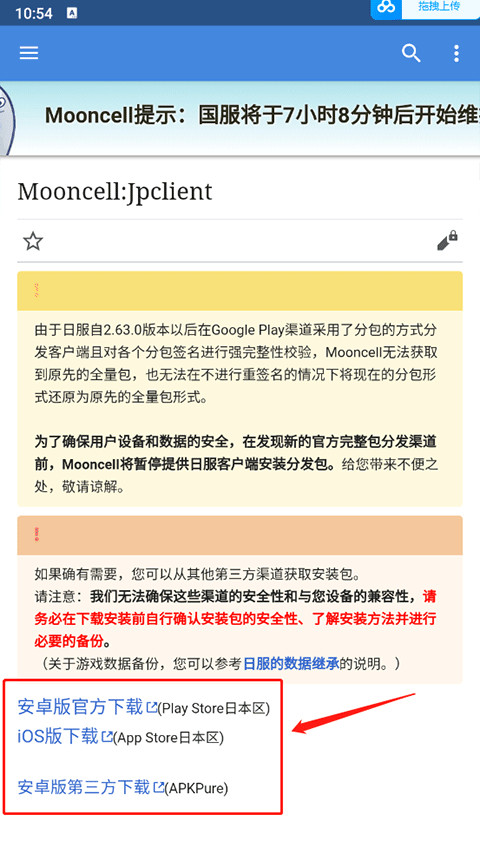 1、打开mooncell wiki后,在首页中点击日服下载功能