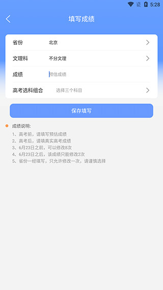 2、依次输入所在的的省份、批次、科目、分数等信息即可;