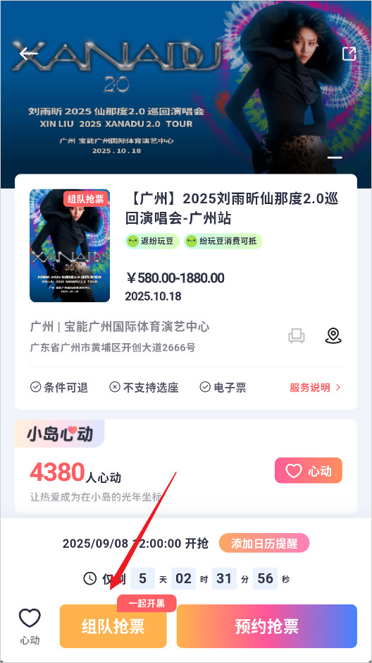 2、点击下方组队抢票