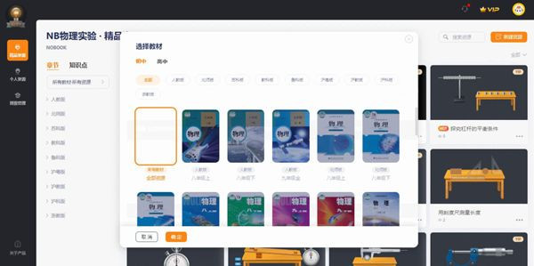 1、在左上角选择对应的学段,点击右上角的新建资源,选择对应的模块,即可进入到相关的实验界面,以物理电与磁模块为例。