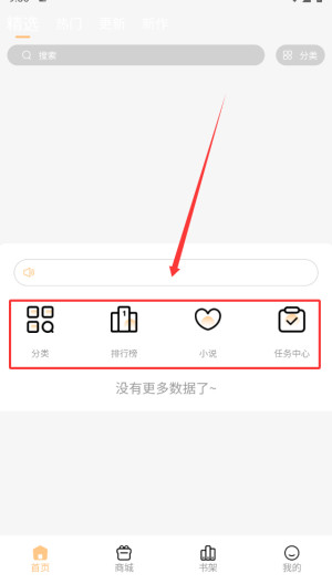 2、首页提供作品分类浏览、热门排行榜单、小说阅读专区及任务中心入口。