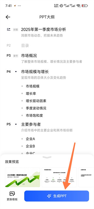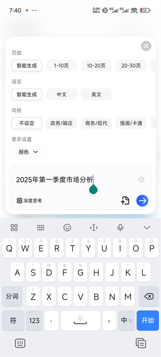 2、搜索框输入(如“2025年第一季度市场分析”)选择风格