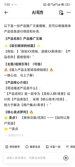 2、在搜索框输入需求,如「帮我写一份产品推广文案」