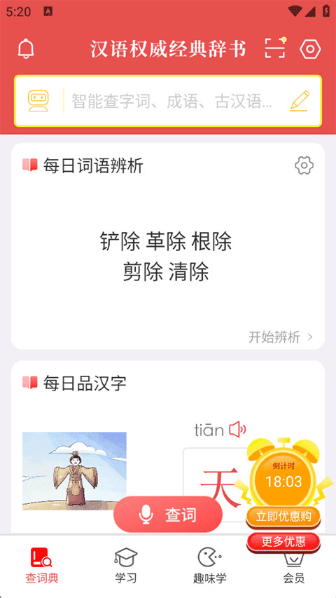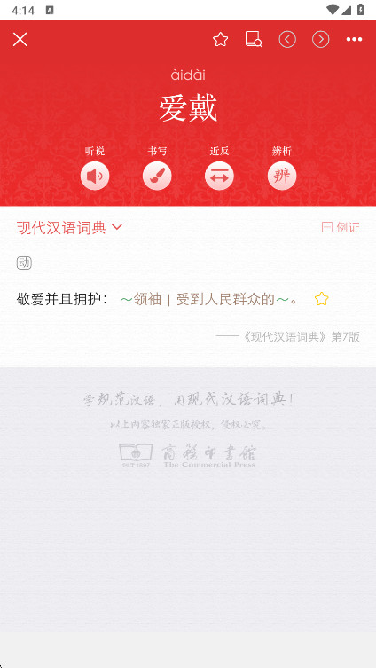 现代汉语词典电子版收录大量汉字、词语与成语,提供规范释义与典型例句。支持拼音、部首、笔画等多种检索方式,实现快速定位词条内容。现代汉语词典电子版app下载内置字形演变与书法字形展示,用于辅助理解汉字结构变化。通过词语关联展示同义词与反义词,扩展语言理解范围,结合学习记录与分类整理功能。