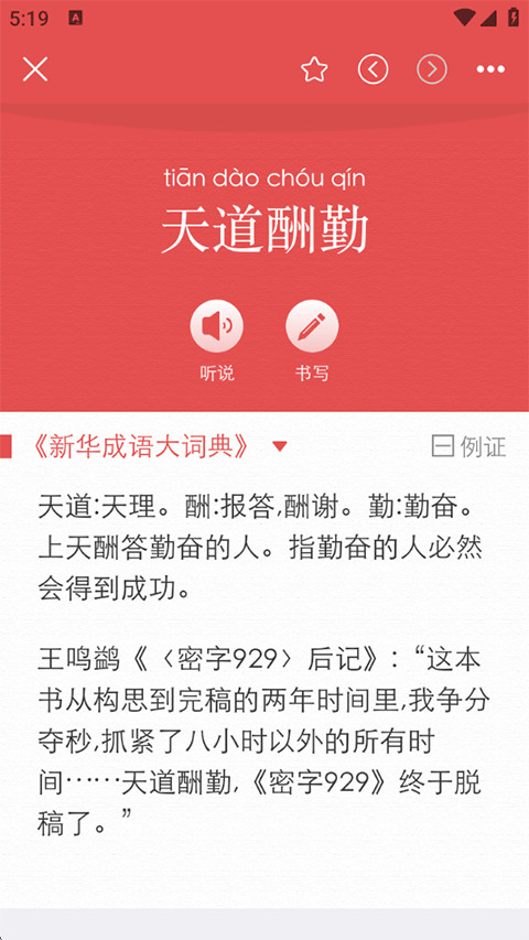 3、点击查词就会显示改成语的读音,释义以及出自来源;