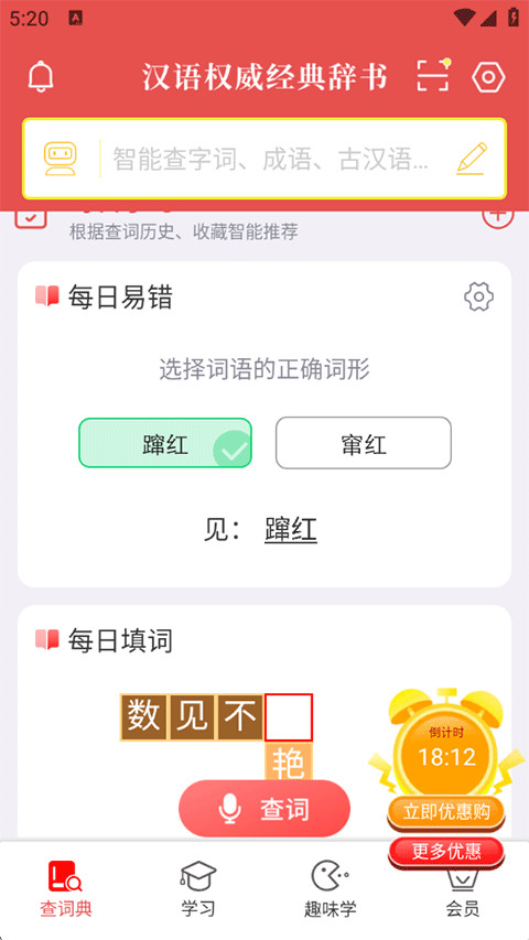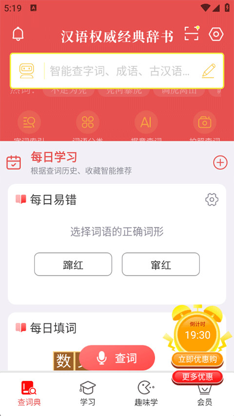 4、除此之外,首页下方还提供每日填词等趣味学习玩法,从此学习不枯燥;