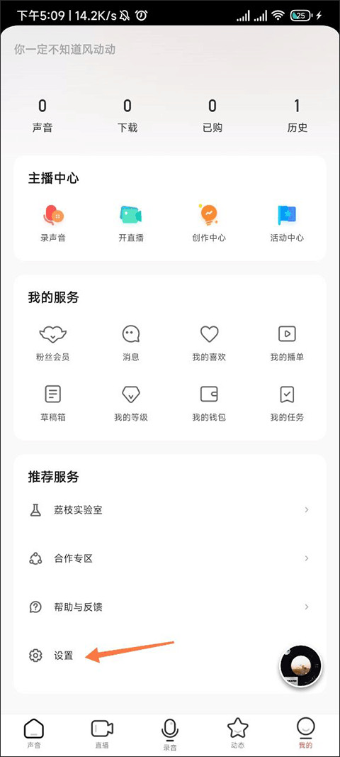 1、首先我们进入荔枝fm的设置界面。