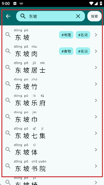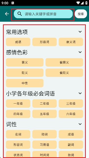 输入汉字或拼音即可快速检索结果。