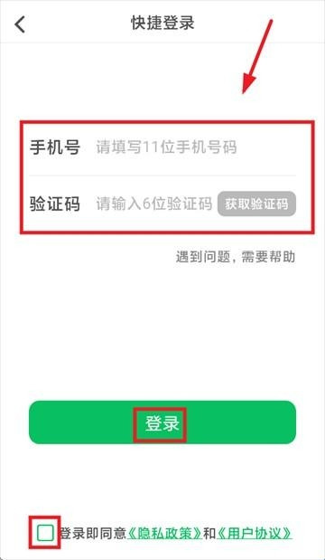 输入手机号与验证码,同时勾选协议确认授权,提交后即可完成登录流程。