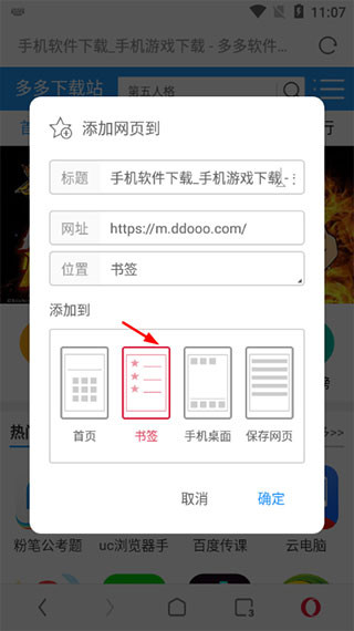 2、可以自己填写标题,选择添加到书签,点击确定;